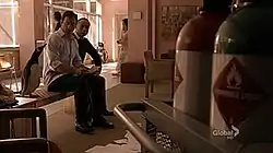 Later, Dr. Lee explains what they are dealing with. Gabriel allows Michael to come in the hospital, but nobody else. Michael enters the building and realizes that he has a "dead man switch", meaning that if Wyath is shot, then the whole building will blow up. Gabriel goes up near the window to handle a man who is screaming, and the police are prepared to shoot him. However, to prevent Gabriel from using his switch, Michael jumps at him, causing him to divert his path. Gabriel knocks him out, and shortly after injects him with ketamine. Michael suddenly wakes up in his "green reality". Michael is looking for a ring, which is Dr. Wild's. He sees a hallucination of a penguin, caused by the drugs. The penguin tells him that Rex has the ring. He calls him down, and Rex reveals that he stole it for his girlfriend, Emma (Daniela Bobadilla). Michael meets Emma and gets the ring back. Dr. Evans (Cherry Jones) claims that he is "having a nightmare about madness". He wakes up in the "red reality" and sees Dr. Lee helping him. The police are coming in to shoot him. Michael quickly phones and tells them to stop, due to the "dead man switch". Gabriel and Michael talk about Gabriel's two reality life. This makes Michael think about his life. Shortly later, Michael and Dr. Evans are talking about his mind. He thinks about his life and tells her that he is okay. During a subsequent discussion, he finds out that Dr. Lee was not really inside his mind; he was actually helping himself.[1]