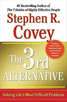 The 3rd Alternative: Solving Life's Most Difficult Problems, published in 2011, is a self-help book by Stephen Covey, also the author of The Seven Habits of Highly Effective People. In it, he takes a more detailed look at habit six from that book, "synergize".[1] Co-author Breck England stated that The 7 Habits of Highly Effective People leads up to The 3rd Alternative.[2] The book focuses on a process of conflict resolution that Covey said is distinct from compromise.[3] It gives details and real-world examples and ends with two chapters explaining that the 3rd Alternative is "a way of life".[1]