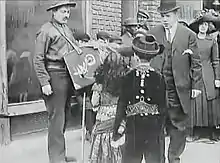 The script for the production was written by Lloyd F. Lonergan, who employed the deus ex machina dramatic technique in the conclusion of the plot.[2] In film, this is the sudden inheritance and parents finding their children in the theater. The two children, Orilla Smith and Yale Boss, were child actors with prior film experience and did not have any further known connection to the Thanhouser Company after the production.[2] The cameraman, Blair Smith, used a camera rented by the Columbia Phonograph Company and had its inventor, Joseph Bianchi, assist in the camera's operation and use. The director of has both been credited to Barry O'Neil and Lloyd B. Carleton in numerous trade sources.[1] Smith was the first cameraman of the Thanhouser Company, but this film was not the Thanhouser Company's first subject. Instead, it was The Mad Hermit produced in autumn 1909 and shelved until August 9, 1910.[3][4] The exact order of the productions is not known, but a work titled Aunt Nancy Telegraphs was filmed in December 1909 and never released.[4] Certain parts of The Actor's Children were produced in the last week of February 1910.[1]