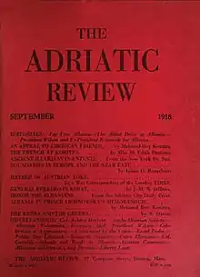 The Adriatic Review was a monthly periodical published in Boston by Vatra from September 1918 until October 1919. In September 1918, Fan Noli founded the English-language monthly Adriatic Review which was financed by the Pan-Albanian federation to spread information about Albania and its cause.