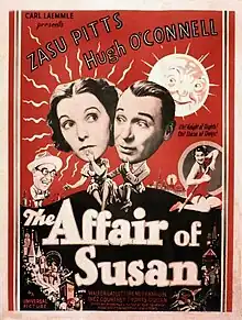 The Affair of Susan is a 1935 American comedy film directed by Kurt Neumann and starring Zasu Pitts, Hugh O'Connell and Walter Catlett.[1] It is a remake of the 1928 silent film Lonesome. Two lonely people meet at an amusement park on Coney Island.