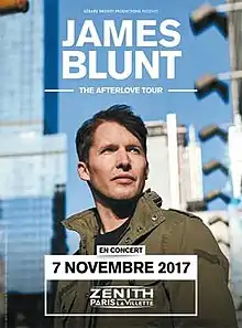 The Afterlove Tour[1] is the fifth concert tour by British recording artist James Blunt. Launched in support of his fifth studio album, The Afterlove (2017). Beginning October 2017, the tour is set to play over 100 shows in Europe, Asia, Australasia and South America.