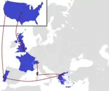 Racers traveled to Switzerland and resumed racing on September 19, 2021, after 1 year, 6 months, and 22 days (nearly nineteen months).[30][31][7] The remaining legs after Scotland were altered to have travel proceed through locations with the lowest COVID-19 rates: Zürich, Lugano, Corsica, Halkidiki, Thessaloniki, and Lisbon before returning to Los Angeles.[7][32][33] However, four teams were unable to return after production resumed due to extenuating circumstances: Anthony was unable to return due to work; Caro & Ray had broken up during the hiatus and Caro's work visa had expired, meaning she was unable to return to the United States due to travel restrictions against non-U.S. citizens; Connie and Sam were expecting a child when the restart was planned; and Taylor was on bereavement following the death of his brother from COVID-19 which had occurred shortly before the planned restart.[34][35] Two teams that had been originally eliminated before the production shutdown, Michael & Moe and Arun & Natalia, were brought back to the competition.[33][36] Filming of the season wrapped in October.[37][38]