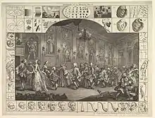 Prominent among Hogarth's ideas of beauty was the theory of the Line of Beauty; an S-shaped (serpentine) curved line that excited the attention of the viewer and evoked liveliness and movement. The Analysis of Beauty formed the intellectual centerpiece of what the historian Ernst Gombrich described as Hogarth's "grim campaign against the fashionable taste",[1] which Hogarth himself described as his "War with the Connoisseurs".[2]