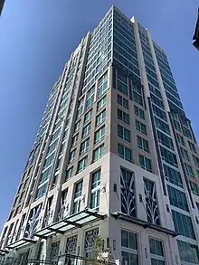 The Arras is the tallest building in Asheville, North Carolina with 19 stories and 201,000 square feet.[1] It was built in 1965 as the Northwestern Bank Building and was later called the BB&T Building. In 2019, it reopened as the Art Deco style Kimpton Hotel Arras on floors 1 to 9, and Arras Private Residences condominium complex on floors 10-19 after a major renovation.[2][3][4] The building is 228 feet tall.[5]