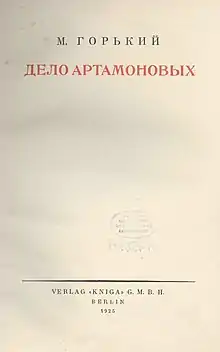 The Artamonov Business (Russian: Дело Артамоновых, romanized: Delo Artamonovykh), also translated as The Artamonovs or Decadence, is a novel by Maxim Gorky written during his 10-year emigration from Soviet Russia. It was published in Berlin in 1925 by Verlag "Kniga". Critics often call it Gorky's best novel, or best after The Life of Klim Samgin.
