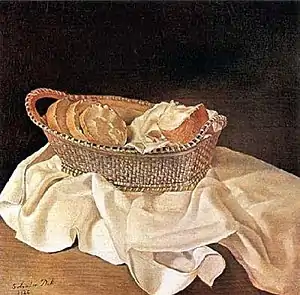 The Basket of Bread is a painting by Spanish surrealist Salvador Dalí. The painting depicts four pieces of bread with butter on them sitting in a basket. One is separated from the others and is half-bitten. The basket sits on a white cloth. The painting resides at the Salvador Dalí Museum, St. Petersburg, Florida.