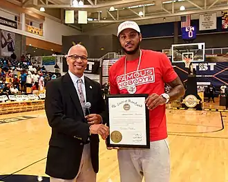 - ↑ Walker, Childs (August 2, 2017). "Carmelo Anthony returns home to Baltimore 'at peace' with himself". The Baltimore Sun. Retrieved July 28, 2018.