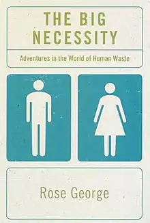 The Big Necessity: The Unmentionable World of Human Waste and Why It Matters (published in the United Kingdom as The Big Necessity: Adventures in the World of Human Waste), written by Rose George, is a descriptive representation of the history, advancement, cultural variation, solutions, and international need of sanitation. This work, written for the purpose of global awareness of sanitation, highlights the current state of a global crisis. George gives insight into how sanitation around the world depicts the standard of living in that area. George uses her own personal experiences as examples to explain the sanitary conditions of areas around the world.[1] Worldwide, 2.6 billion people (40% of the world's population) do not have sanitary facilities or systems to dispose of waste;[2] Studies show that 95% of human waste is released into lakes, rivers, and ponds in developing countries.[3] George discusses the lack of sanitation and toilets for the majority of the world and the resultant infection of water supplies causing 10% of the world’s communicable diseases,[4] while access to a toilet adds 20 years to the average life.[5]
