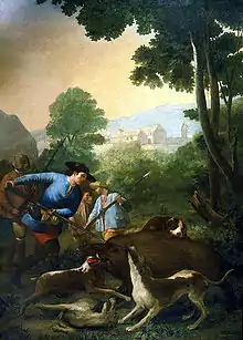 The Boar Hunt (Spanish: La caza del jabalí) is a painting of 1775 by Francisco Goya and the earliest surviving tapestry cartoon by the artist. It depicts men with dogs and boar spears killing a boar.