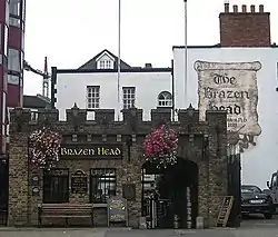 The Brazen Head is a pub in Merchant's Quay, Dublin, built as a coaching inn in 1754, on the site of a merchant's dwelling dating back to at least 1613.[1][2][3] lt received a licence to sell ale in 1661, and the first mention of it as an inn was in 1668.[4][5][lower-alpha 1]