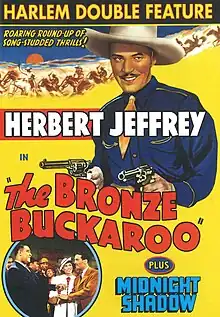 The Bronze Buckaroo is a 1939 American Western race film directed by Richard C. Kahn.[1] The Bronze Buckaroo stars Black cowboy singer Herb Jeffries,[2][3] here billed as Herbert Jeffrey.[4]