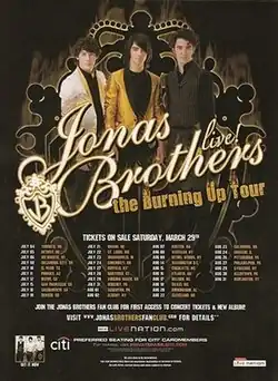 - ↑ "Jonas Brothers Announce Summer Dates for 'The Burning up Tour'". March 19, 2008.