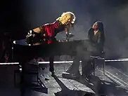 Price became assigned as musical director for the tour following a call with Madonna congratulating her on the announcement of the tour.[21] Although some of her children play instruments,[44] for the first time in her touring career, there was no a live band, which according to Price, the reason is "to let the original recordings shine".[45] He also stated "There's a couple of spoken word sections in the show where we just use track. But it's all live vocals".[46]