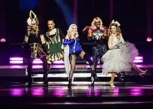 Initially, media reported costume designer Guram Gvasalia from Vetements was enlisted to be the costume director.[53] In early April 2023, Madonna showcased her costume archives on Instagram ahead of the tour.[54] She enlisted creative duo designers Yohannes and Rita Melssen.[55] The costume duo created and designed almost all outfits paying tribute to her four decades of fashion; they began their research by looking at Madonna's polaroids and performances from her beginnings, commenting "we wanted to reference everything that she's done, and make something new out of that".[55] According to Yohannes and Melssen: "She is involved in every single process of the costume design. She looks at all the fabrics, sketches, and buttons. She cares about who the characters are, and the clothes telling that story".[55] The new costumes received positive commentaries by publications such as The New York Times, Harper's Bazaar and Vogue.[56][55]