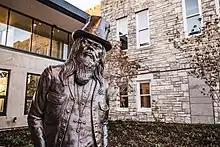 A life-sized bronze statue of Leon Russell as he appeared in 1972 when he purchased the church, including his Wrangler denim jacket, snake-skinned boots, cross necklace, and signature top hat, stands at the new entrance of The Church Studio. The statue, which took three years to complete, was created by artist Jim Franklin of Perry, Oklahoma, was commissioned by Teresa Knox, who also owns the copyright.[15][16]