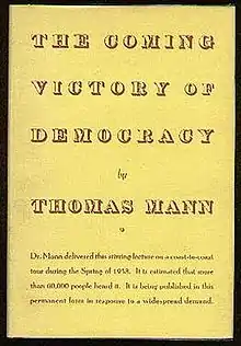The book contains the abbreviated text of a lecture series delivered by Thomas Mann from February to May in 1938, which was broadcast all over the United States. Mann's intent was to rally support in America for fighting the Nazi regime in Germany. In the text, the German expatriate author explains his moral, political, and artistic reasons for desiring and predicting the victory of democracy over the fascism of his own native country.