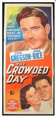 The Crowded Day is a 1954 British comedy drama film directed by John Guillermin and starring John Gregson, Joan Rice, Cyril Raymond and Josephine Griffin. The film follows a group of shopgirls working in Bunting and Hobbs, a London department store, during the Christmas shopping season.[1][2] It was an attempt by Adelphi Films to move into bigger budgeted films. It was the last movie Guillermin directed for the company.[3] It was released in the United States under the title Shop Spoiled.