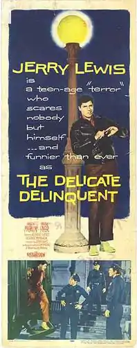 The Delicate Delinquent is an American VistaVision comedy film starring Jerry Lewis, released on June 6, 1957, by Paramount Pictures. It was the first film to star Lewis without his longtime partner Dean Martin and marked Lewis' debut as a producer and screenwriter.