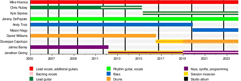96. "This is our pal Mason who's been filling in..." Instagram. September 14, 2018. Archived from the original on December 23, 2021. Retrieved September 15, 2018. This is our pal Mason who's been filling in on bass while Andy is home. Rochester tonight / Bethlehem, PA tomorrow. Bummed to miss Mrytle Beach the day after - to the folks down that way, our thoughts are with you, stay safe. Photo by @staceytakespictures