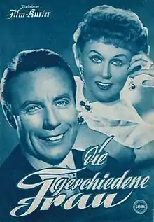 The Divorcée (German: Die geschiedene Frau) is a 1953 German musical film directed by George Jacoby and starring Marika Rökk, Johannes Heesters and Hans Nielsen.[1] It was based on the operetta Die geschiedene Frau by Leo Fall and Victor Léon. It was shot at the Bavaria Studios in Munich. The film's sets were designed by the art director Robert Herlth.