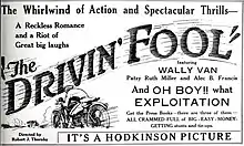 The Drivin' Fool is a 1923 American silent comedy action film directed by Robert Thornby and starring Wally Van, Alec B. Francis, and Patsy Ruth Miller.[1][2]