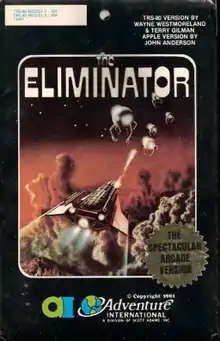 The Eliminator is a horizontally scrolling shooter video game written by Terry Gilman and Wayne Westmoreland for the TRS-80 and published by Adventure International in 1981.[2] It was ported to the Atari 8-bit family and Apple II. The Eliminator is a clone of the Defender arcade game.[1]