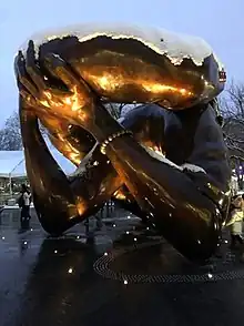 The Embrace is a bronze sculpture by Hank Willis Thomas, installed on Boston Common in Boston, Massachusetts, United States, in December 2022.[2] The artwork commemorates Martin Luther King Jr. and Coretta Scott King,[3][4] and depicts four intertwined arms,[5] representing the hug they shared after he was awarded the Nobel Peace Prize in 1964.[6] The work was created by welding together about 609 smaller pieces.[7][8] The sculpture has received largely negative responses from critics and the public.