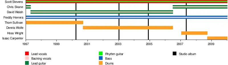 In 2008, internet rumors circulated that Scott Stevens was suffering from drug addiction. Stevens denied the drug abuse hearsay, and joked about the rumors during press interviews.[3] In June, the Exies completed The Cage-Rattle Most Wanted Tour with Nu-metal band, Nonpoint. In October that year, they began a tour with TRUSTcompany.