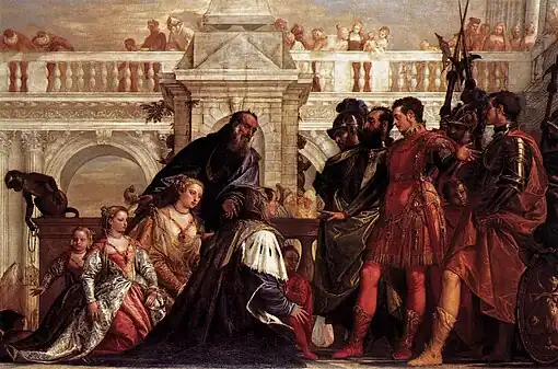 The Family of Darius before Alexander is an oil painting on canvas by Paolo Veronese, created ca. 1565–1570. It depicts Alexander the Great with the family of Darius III, the Persian king he had defeated in battle. Although Veronese had previously painted a version of the subject, since destroyed, the theme had rarely been depicted by other artists before him.[1] The painting has been in the collection of the National Gallery in London since 1857.