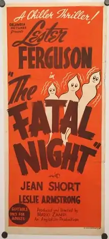 The Fatal Night is a 1948 British thriller film directed by Mario Zampi and starring Lester Ferguson, Jean Short and Leslie Armstrong.[1] It is based on a 1925 short story, 'The Gentleman from America', by Michael Arlen about an American visitor to London who makes a bet with two Englishmen that he cannot spend a night alone in a 'haunted' house. The same story, under the original title, was adapted in 1956 as an episode of the TV series Alfred Hitchcock Presents.