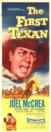 The First Texan is a 1956 American CinemaScope and Technicolor western film directed by Byron Haskin and starring Joel McCrea, Felicia Farr and Jeff Morrow.[2] Produced by Walter Mirisch, it was shot in CinemaScope and distributed by Allied Artists. It is set during the Texas Revolution of the 1830s.