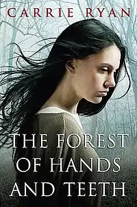 The Forest of Hands and Teeth is a New York Times best-selling post-apocalyptic zombie novel by first-time author Carrie Ryan that is marketed to young adults. It was published in 2009 by Random House Delacorte Press in the United States, and by Hachette Gollancz in Australia and the United Kingdom. This is the first volume of a trilogy; the second book in the series, The Dead-Tossed Waves, was released on March 9, 2010, and The Dark and Hollow Places followed in March 2011. As the story opens, an unexplained disaster has turned much of the human race into mindless, cannibalistic undead. They roam the titular forest, seeking to destroy a band of survivors barricaded inside a walled village deep in the woods. However, the fence that protects these villagers also imprisons them within a dystopian society marked by violence, secrecy, and repression. The forest thus profoundly influences all the action of the novel.