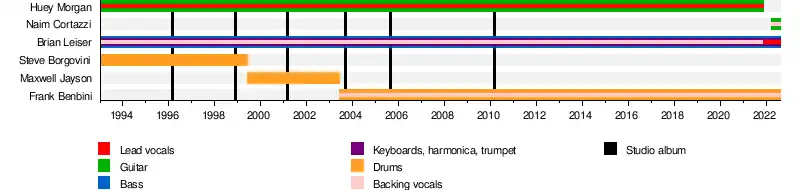 • Brian Leiser - bass, keyboards, trumpet, harmonica, backing vocals (1993-present), lead vocals (2021-present)