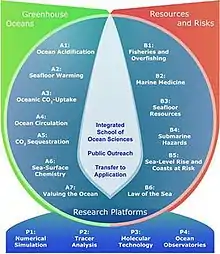 The Future Ocean is a Cluster of Excellence founded in November 2006 in line with the German excellence initiative by the Christian-Albrechts-Universität zu Kiel (CAU), the Muthesius Kunsthochschule (MKHS), the Institut für Weltwirtschaft (IfW) and the Helmholtz-Zentrum für Ozeanforschung (GEOMAR).[1][2] It is an interdisciplinary marine research group and it is funded by the German Research Foundation (DFG).[3] Part of the cluster is the Integrated School of Ocean Sciences (ISOS) which is a post graduate school for ocean sciences in Kiel.