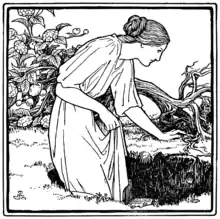 Scholars have called attention to structural similarities between the tale and the Graeco-Roman myth of Cupid and Psyche, as related by Apuleius in the 2nd century AD.[3] In fact, The Golden Root is considered to be one of Basile's renditions of the myth, the other being Il catenaccio ("The Padlock", former tale type AaTh 425L, "The Padlock on the Enchanted Husband").[8] Folklorist Joseph Jacobs stated that The Golden Root is the first appearance in modern times of the "Cupid and Psyche story" (invisible husband, breaking a taboo, heroine's tasks for mother-in-law).[9]