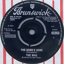 "The Good's Gone" is a song by English rock band the Who, written by their guitarist Pete Townshend. Initially recorded and sequenced as the third track of their debut My Generation in December 1965, it was released as the B-side to "La-La-La-Lies" in November 1966.[1] Heavily inspired by Ray Davies song "See My Friends", Townshend wrote the track with blues in mind.