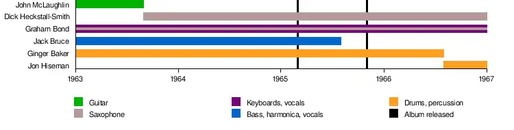 - Graham Bond – keyboards, saxophone, vocals (1963–1967)