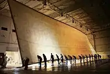 As of 2011, The Great Picture (111 feet (34 m) wide and 32 feet (9.8 m) high) holds the Guinness World Record for the largest print photograph, and the camera with which it was made holds a record for being the world's largest.[1] The photograph was taken in 2006 as part of the Legacy Project, a photographic compilation and record of the history of Marine Corps Air Station El Toro as it is being transformed into the Orange County Great Park. The project used the abandoned F-18 hangar #115 at the closed fighter base in Irvine, California, United States, as the world's largest pinhole camera. The aim was to make a black-and-white negative print of the Marine Corps air station with its control tower and runways, with the San Joaquin Hills in the background. The photograph was unveiled on July 12, 2006, during a reception held in the hangar and was exhibited for the first time at the Art Center College of Design in Pasadena, California, on September 6, 2007.[2][3]