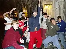 The Hangovers are a men's collegiate a cappella ensemble based at Cornell University. Founded in 1968, they are the oldest active a cappella group on campus and are the official a cappella subset of the Cornell University Glee Club,[1] itself the oldest student organization of any kind at Cornell University.[2] The Hangovers' repertoire consists mainly of popular songs arranged for the ensemble by its members and alumni, but the group also performs traditional Cornell songs,[3] as well as selections from the Glee Club repertoire on occasion.[4]