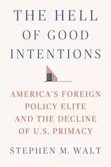 The Hell of Good Intentions: America's Foreign Policy Elite and the Decline of U.S. Primacy is a book by Stephen M. Walt, which focuses on the foreign policy of the U.S. government. According to the Belfer Center for Science and International Affairs, Walt unveils the reality of White House foreign policy and argues that past U.S. presidents such as Clinton, Bush, and Obama, avoided accountability for repeated failures of their foreign policies. He also argues that such foreign policy mistakes contributed to the election of Donald Trump as president.[1] In the book, Walt offers his take on what U.S. foreign policy should be and suggests that U.S. politicians should change their foreign policy approach.[1]