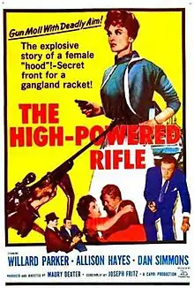 The High Powered Rifle is a 1960 American action film produced and directed by Maury Dexter and written by Joseph Fritz. The film stars Willard Parker, Allison Hayes, Dan Simmons, John Holland, Shirley O'Hara and Terrea Lea. The film was released in September 1960, by 20th Century-Fox.[2][3][4][5]