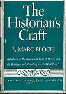 The Historian's Craft (French: Apologie pour l'histoire ou Métier d'historien) is a 1949 book by Marc Bloch and first published in English in 1953 (New York: Knopf). It was the first of his works to be translated into English.[1] At that stage he was not as well known in the English-speaking world as he was to be in the 1960s where his works on feudal society and rural history were published. The book was written in 1941 and 1942. Bloch joined the French Resistance prior to its completion.
