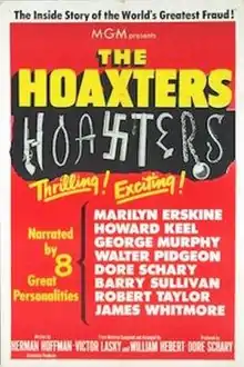 The Hoaxters is a 1952 American documentary film about the threat posed by communism to the American way of life. It was nominated for an Academy Award for Best Documentary Feature.[2] The Warner Home Video DVD release of the 1998 CNN documentary The Cold War in 2012 included this film as a special feature.[3] According to MGM records, the film earned $167,000 in the US and Canada and $10,000 elsewhere.[1]
