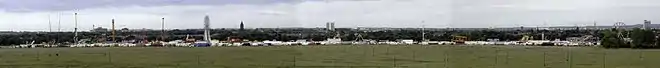 In 2013 after a dispute between the Showmen's Guild and Newcastle City Council over pitch and rent terms, alternate fairs were held at Nuns Moor Newcastle upon Tyne and Herrington Country Park, Sunderland.[17][18] Newcastle council held an alternate event with "broader appeal" which included a funfair held on the Town Moor.[19] The Hoppings returned to the Town Moor in 2014 after the dispute was resolved.[20]