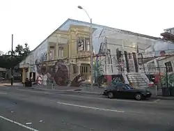 The current location at 907 S. Peters St. has a mural on the exterior created by artist Michalopoulos.[6] The mural is a re-creation of New Orleans neighborhood scenes and references New Orleans music history. The mahogany bar in the venue was taken from Al Capone’s hotel, The Lexington, during its demolition in the 1980s.[7] Connected to the Howlin’ Wolf's main room is The Howlin' Wolf Den.