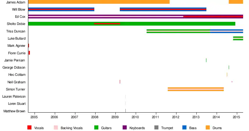 The band was originally composed of four members. James Adam played the drums, and Will Blow played the bass and was lead vocalist. Ed Cox performed the keyboard and sung backing vocals. Sholto Dobie played the guitar.