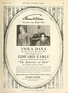 The Innocence of Ruth is a 1916 American silent drama film directed by John H. Collins[1] and starring Edward Earle, Viola Dana and Augustus Phillips.[2]