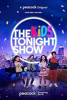The Kids Tonight Show is an American late-night talk show for children that premiered on Peacock on October 14, 2021. The series is hosted by Recker Eans, Dylan Gilmer, Mykal-Michelle Harris, and Olivia Perez. On the show, it is referred as "the first talk show for kids by kids" and is based on the long-running late-night talk show The Tonight Show.[1][2][3]
