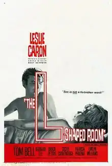 The L-Shaped Room is a 1962 British drama romance film directed by Bryan Forbes, based on the 1960 novel of the same name by Lynne Reid Banks.[2] It tells the story of Jane Fosset (Leslie Caron), a young French woman, unmarried and pregnant, who moves into a cheap London boarding house, befriending a young man, Toby (Tom Bell), in the building.[3][4] The work is considered part of the kitchen sink realism school of British drama.[5][6] The film reflected a trend in British films of greater frankness about sex and displays a sympathetic treatment of outsiders "unmarried mothers, lesbian or black" as well as a "largely natural and non-judgmental handling of their problems". As director, Forbes represents "a more romantic, wistful type of realism" than that of Tony Richardson or Lindsay Anderson.[7]